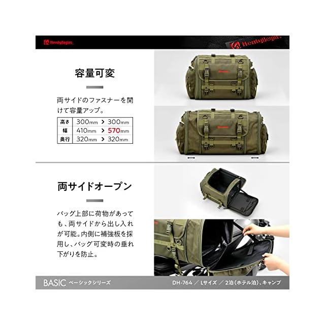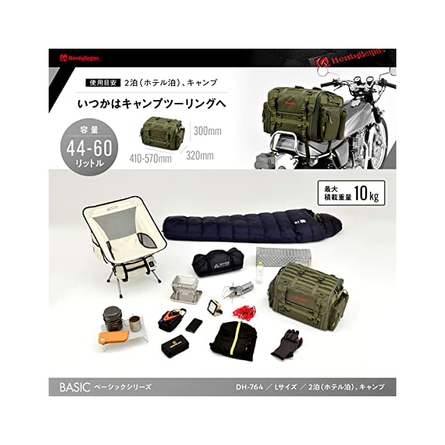 [Henly Begins] デイトナ バイク シートバッグ BASIC Lサイズ(44-60L) 大容量 キャンプツーリング DH-764 29785 [BASIC] グリーン
