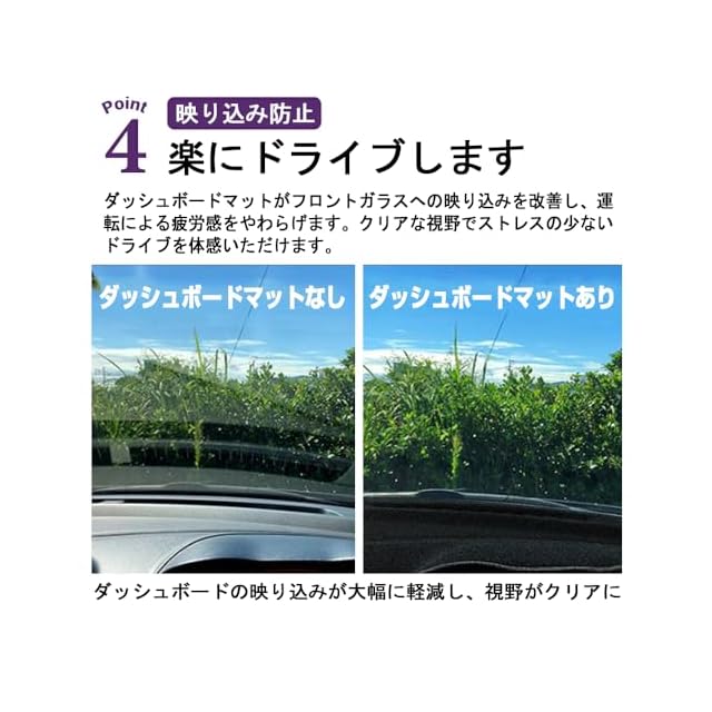 映り込み防止:ダッシュボードマットがフロントガラスの映り込みを低減し、運転ストレスを軽減します。