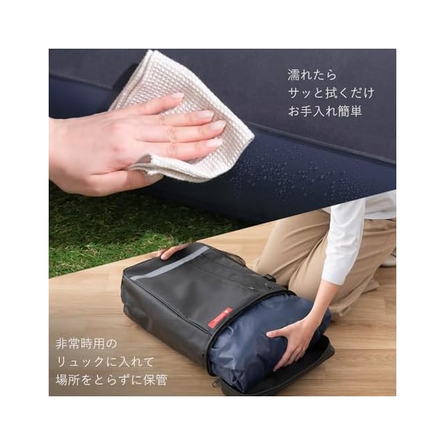 空気を抜けばコンパクトに折りたためるので、持ち運びも収納もしやすいサイズになります。