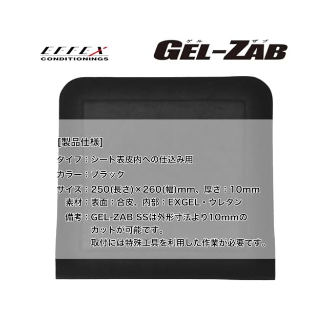 エフェックス(EFFEX) GEL-ZAB SS(ゲルザブSS) エクスジェル (EXGEL) バイクシート用 ゲルシート 体圧分散 汎用 ユニバーサル (260x250mm) 加工用 埋め込み EHZ2526