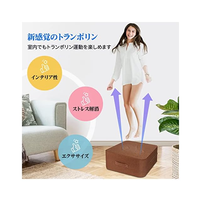 【人気アイテム:室内用トランポリン】日本開発チームに開発された最新型トランポリンです。高反発素材を採用し、おうち時間でも気軽にジャンプエクササイズが楽しめます。お部屋になじむインテリア性を備え、使わない時はクッションとしてもご利用いただけます。ストレス解消、エクササイズにぴったり、絶対に見逃したくない人気アイテム。