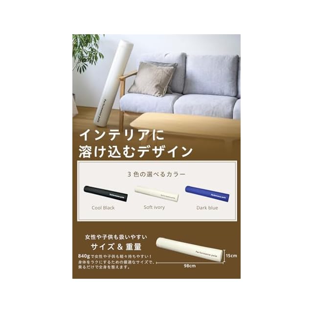 【部屋の雰囲気を邪魔しない】主張しすぎないナチュラルカラーだから、どんな部屋にも馴染みます。リビングに置いておけるため、いつでも手軽にストレッチができます。
