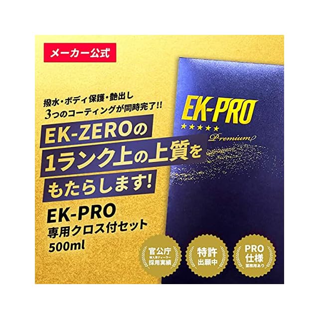 商品名:EK-PRO 500mlクロスセット プロ仕様 水なし洗車 コーティング剤 簡単 時短 濃度1.5倍 PRO EK-ZERO 日本製