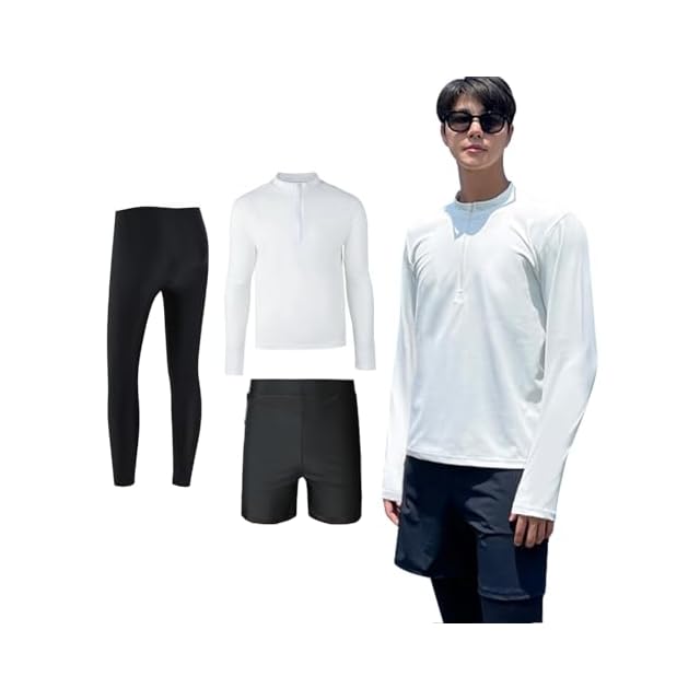 [Adigaber] ラッシュガード メンズ 水着 3点セット 上下 フィットネス 長袖 パーカー レギンス サーフパンツ ハーフジップ UVカット 吸汗速乾 水泳 水陸両用 大きいサイズ