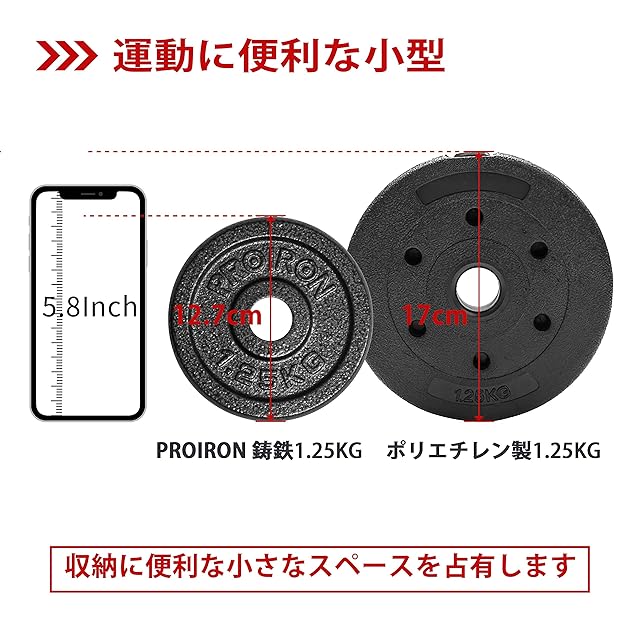商品名:PROIRON ダンベル プレートバーベル プレート 1.25kg×4個 鋳鉄製 トレーニングバンパープレート 穴径25mm