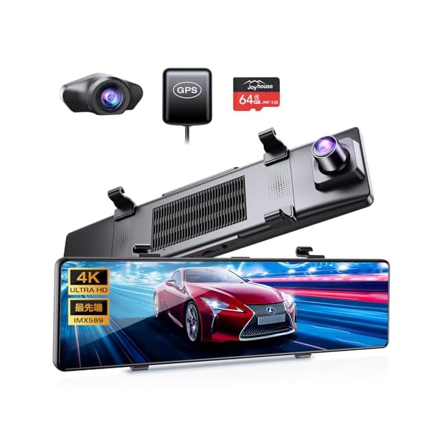 【4K超高画質×前後カメラで走行中のすべてをクリアに記録】 このミラー型ドライブレコーダーは、フロントに4K対応カメラ、リアにフルHDカメラを搭載した前後カメラ仕様で、走行中のすべての状況を高精細に記録。ナンバープレートや標識も細部まで映し出せるので、事故時の証拠映像としても信頼性抜群。旅行中のドライブ映像も美しく残せます。録画用には大容量64GB SDカードが付属しており、長時間の記録にも対応。前方と後方の安全を同時に見守るミラレコとして、通勤やレジャー、家族ドライブまで安心を提供します。これ1台で、日常の安全対策から思い出の記録まで、幅広く活躍するドラレコです。