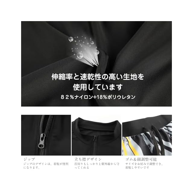 【UVカット】安心のUPF50+(肌に有害な紫外線を98%以上カット)生地使用しているため、「着るだけ」で、うっかり日焼け予防を実現。紫外線の強い海や川など、屋外での使用も安心です。足首丈レギンス、水を通さず、肌にベタつきにくく、虫刺されやクラゲ対策にも。