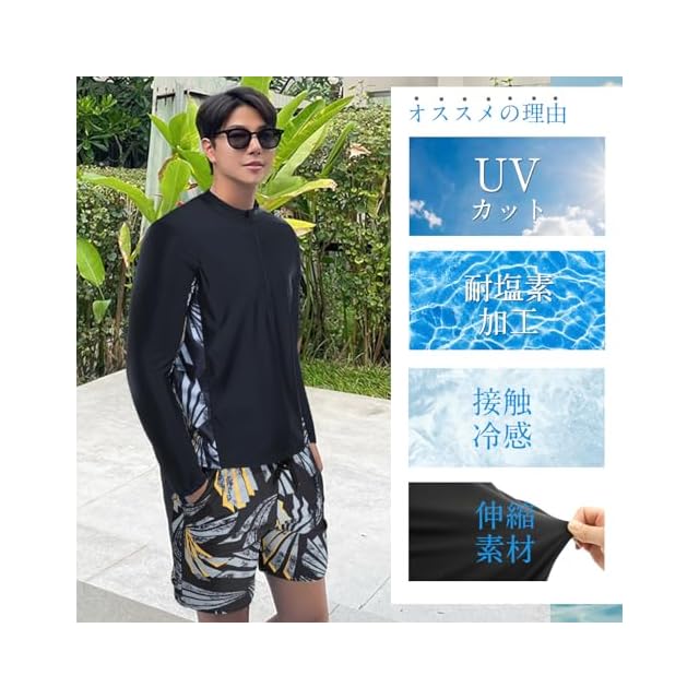 【セット内容】ラッシュガード・ショートパンツ・レギンスのフルセット入った3点セットで色々買い揃えたりする手間なく、買ってすぐ使用できるのが嬉しい!ショートパンツはさらっとた肌触りで履き心地抜群です。レギンスも付いているので、足先まで日焼け防止&怪我防止の効果も!体型カバーにも日焼け対策にも最適なフルコーデセットアップです。