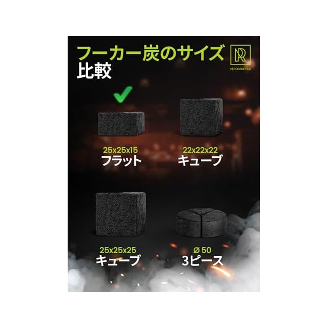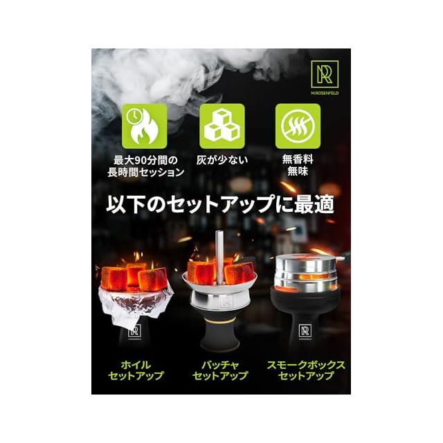 汚れ知らずの快適さ – 高密度のココナッツ炭キューブは灰の発生が極めて少なく、清潔な環境を維持します。タバコに灰が混ざることもなく、周囲を汚しません。ご自宅での使用はもちろん、シーシャバーやカフェの雰囲気をワンランクアップさせます。