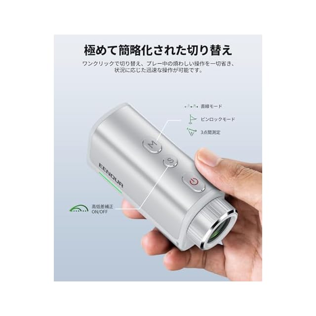 【EENOUR初 単レンズゴルフ距離計】単レンズU1距離計は小型でありながら、グリップ部分の周りが更に短くなり、どんな手の大きさでも自由に調整してフィットし、これまで以上の持ちやすさと快適さを提供し、より安定した計測と高い操作性を実現します。