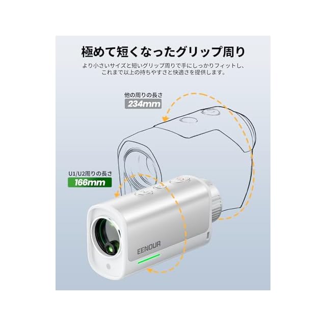 【EENOUR初 単眼ゴルフ距離計】単レンズU2距離計は小型でありながら、グリップ部分の周りが更に短くなり、どんな手の大きさでも自由に調整してフィットし、これまで以上の持ちやすさと快適さを提供し、より安定した計測と高い操作性を実現します。