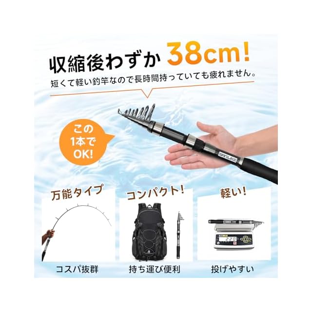 軽便で持ち運びしやすい:短くて軽い投げ竿は旅行中に簡単に持ち運びでき、バックパックに簡単に入れられます。旅行中にもお釣りを楽しむことができます。