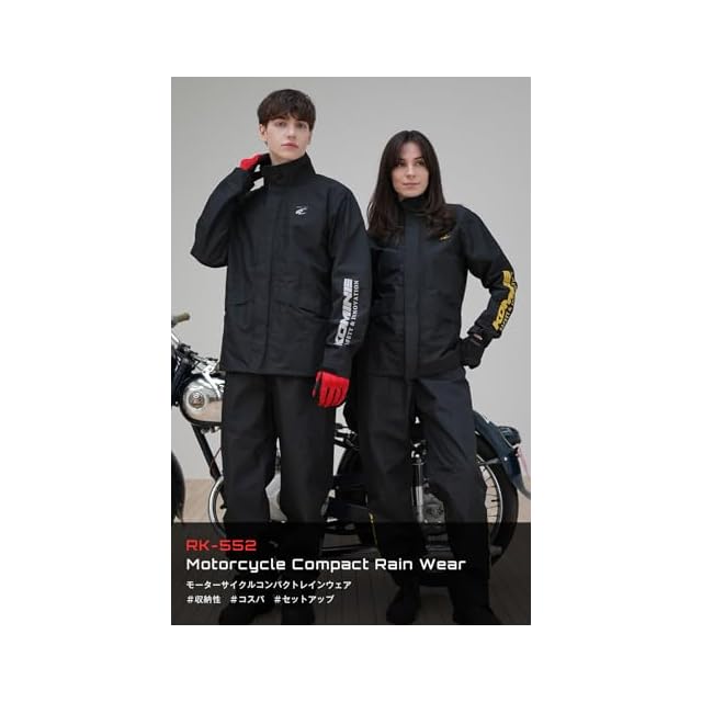 [コミネ] 2025モデル RK-552 MCコンパクトレインウェア バイク用 耐水 透湿 上下セット Black L