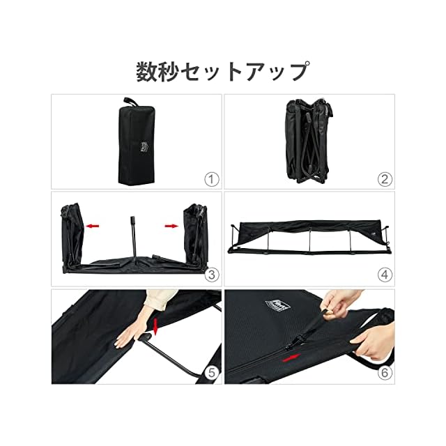 →【寝心地良いテントコット】①、ロータイプなので、テント内に使用しても狭く感じない!通気性に優れいて地面の凸凹の影響も受けにくい。 ②、収納ケース付で持ち運びも楽々、使用後はコンパクトに収納できます。③、一体式設計により脚部が崩れることはなく、設置後の安定性が抜群です。