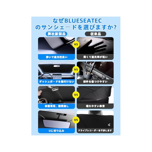 ♪【BLUESEATECのサンシェードを選択する理由】 車種専用設計、超耐久4層構造、メーカー、紫外線対策、UVカット、車内熱度軽減、車中泊、吸盤不要・使用感アップ、車内エアコンの効率良くなり、省エネ、プライベート空間、プレゼント出来、コスパ、ドラレコも駐車監視でき、ミラーが干渉しなく、内装劣化防止、熱中症発症防止、有毒気体生成防止、収納便利、取り付け簡単、無毒無味、サイズピッタリ、高品質素材、収納袋付き、真夏の太陽の照り付けから愛車を守る。友達または親にもプレゼントすることにおススメです。