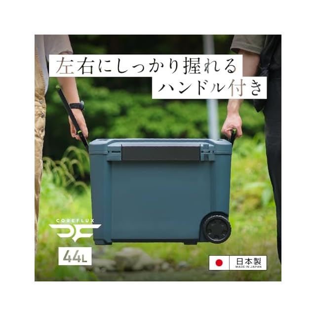 JEJアステージ 座れる 高保冷力 クーラーボックス COREFLUX (コアフラックス) インディゴグレー 44L 日本製[幅592×奥行419×高さ435mm]レジャー スポーツ 部活 アウトドア 鍵穴付き ピクニック 水抜き栓 仕切板 トレー付き 蓋が外せてお手入れ簡単
