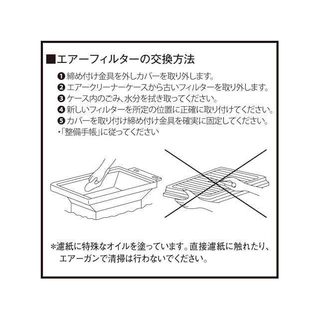 [交換の目安] エンジンの高性能と省燃費を維持するための目安は、ドライタイプ=乾式は走行距離10,000km(ビスカスタイプ=湿式エアーフィルターは20,000km)での購入をおすすめします。