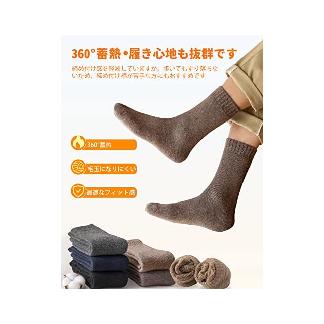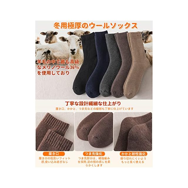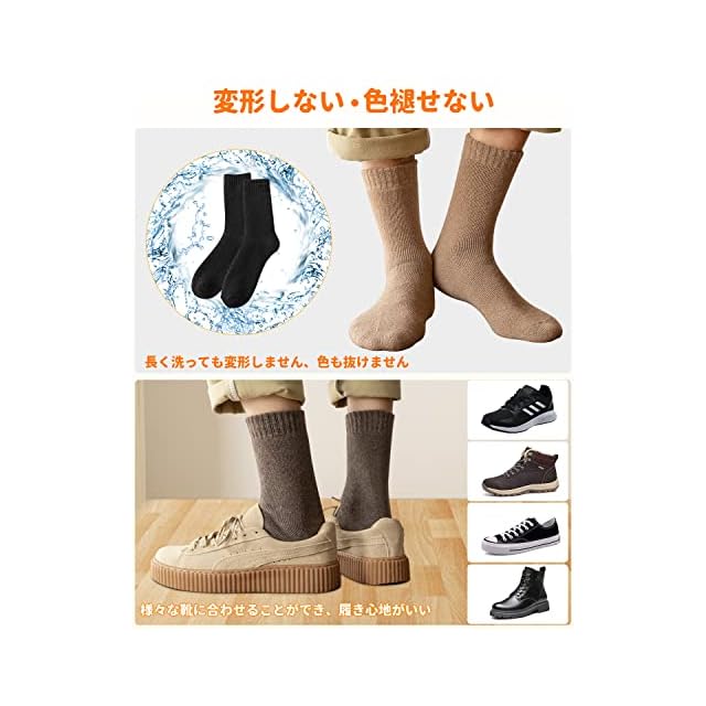 【高弾力・快適耐久性】伸縮性にも優れているので、締め付け感なくて、長く洗っても変形しません、色も抜けません。ソックスのつま先の縫製技術は優れているため、柔らかで快適、耐久性も優れています。冬季節に防寒保温として必需品 靴下 メンズです。
