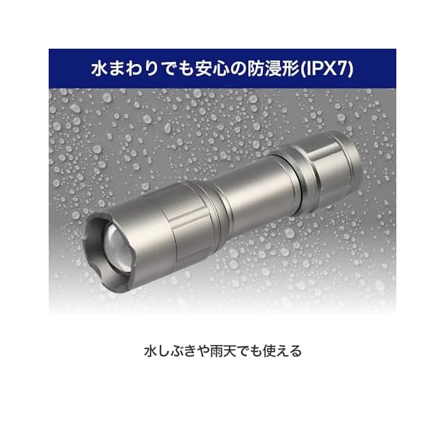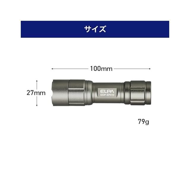 エルパ(ELPA) LED懐中電灯 防水 明るさ100ルーメン ハンドストラップ付き 電池式 シルバー DOP-EP410