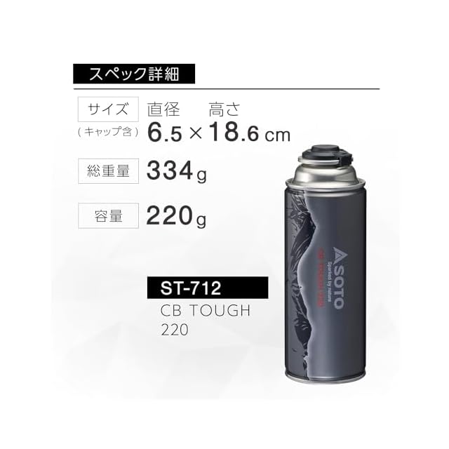 ソト(SOTO) 日本製 CB缶 ハイパワー カセットボンベ アウトドア CB TOUGH 220 ST-712