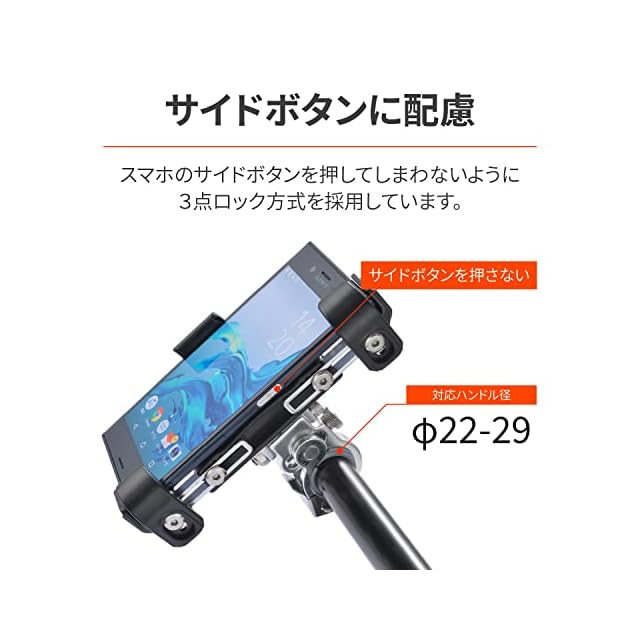 片手でスマホを簡単に着脱 ・ハンドル径径22~29対応(リジットタイプ)
