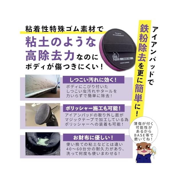 ✅傷対策もバッチリ!他の鉄粉除去パッドと違い特殊ゴム素材に粘着性を持たせたモデルだから粘土の様に除去力が高いのに傷付きにくくなっています!