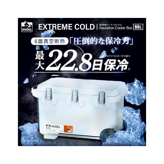 60Lの真空断熱クーラーボックス。冷蔵庫技術を[家]から[外]へ。約22日保冷。※アイリスオーヤマ調べ