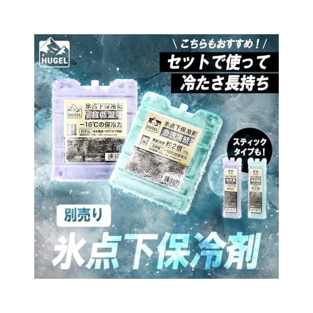 (※保冷試験条件:容量比40%の氷をクーラーボックスに入れ[30℃:9時間/20℃:15時間]で保管後に氷重量を測定。氷が溶け切るまでの時間を算出[社内試験結果]。実際の使用状況、環境等によって保冷力は異なります。)