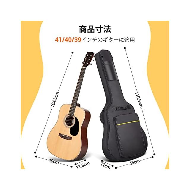 【41/40/39インチ】 41/40/39インチ大きなギターバッグなので、アコースティック、クラシック、フォークギターなど様々なギターに適用します。