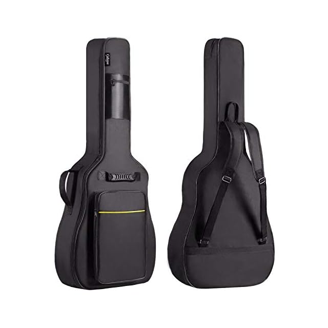 CAHAYA 【9mmスポンジ】 ギターケース アコースティックギター ギグバッグ 軽量 ソフト ケース フォークギターバッグ 大容量ポケット付き 頑丈 耐久 全体 改善 リュック型 肩掛け 手提げ (黄色いストライプ付き) CY0152