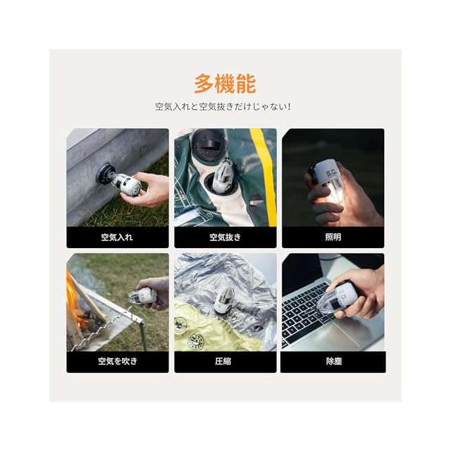 【多用途】6つのエアノズルを搭載、さまざまな場合に対応します。アウトドアのエアクッション、車のエアクッション、水泳リング、水に浮かぶ列、真空保管袋および他の膨脹可能な製品に適しています。