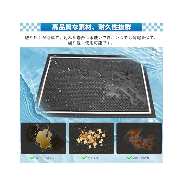 【防塵防汚・車内を清潔に保つ】 車内で埃や汚れが付着するのを防ぎ、清潔な状態を保つことができます。ポケットマットは高品質のシリコンゴム素材を採用しており、取り外して水洗いが可能。洗浄後は何度でも繰り返し使用できるため、車内を常に清潔に保つことができ、コストパフォーマンスにも抜群です。家族や友人を乗せる際も、常に綺麗な車内環境を提供します。