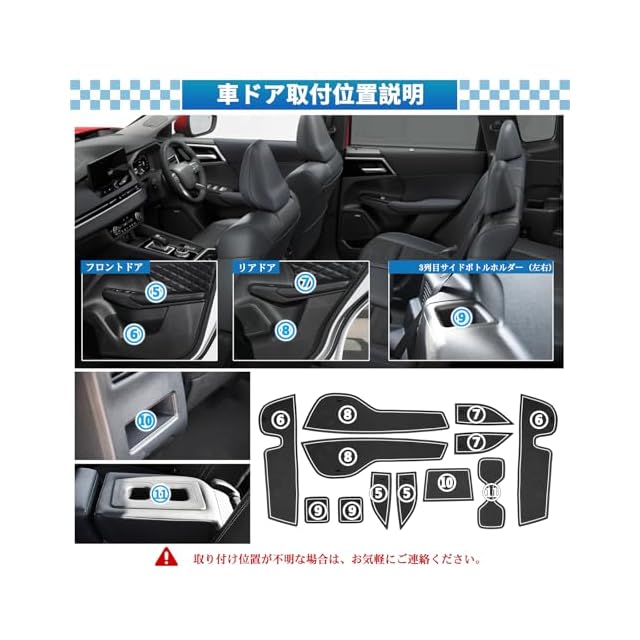 【車種専用・傷防止】アウトランダー 専用に設計されたラバーマット(17枚入り)は、各部品が車両の精密データに基づいて設計されています。そのため、寸法のズレを心配する必要はありません。表面は高耐久性素材を採用しており、傷がつきにくい仕様です。特に、トレイに缶コーヒーや小物を置いた際の擦れや傷から保護する効果を発揮します。車内を綺麗に保ちながら、毎日の使用にしっかり対応します。