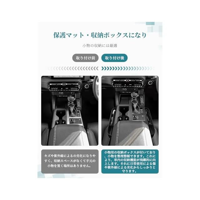 【手間なし・簡単取り付け】ランクル250専用に設計されたオリジナルデータを基に、3Dスキャン技術を採用し、コンソールにぴったり合うサイズです。テープなし、工具不要でコンソールに合わせて押すだけの取付、内装に傷つけない!