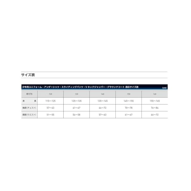 120:胸囲57~63cm、胴囲51~55cm、身長115~125cm
