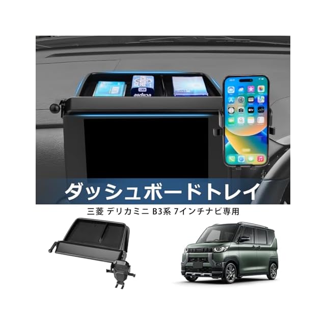 Auto Spec 三菱 デリカミニ B3系 に適合 ダッシュボードトレイ 車内収納ボックス 3Dトレイ 携帯ホルダー スマホホルダー付き 360度回転 小物入れ 7インチナビ専用 車種専用設計 内装 パーツ 滑り止めラバーマット付き 収納アクセサリー 装着簡単 メーカー直営