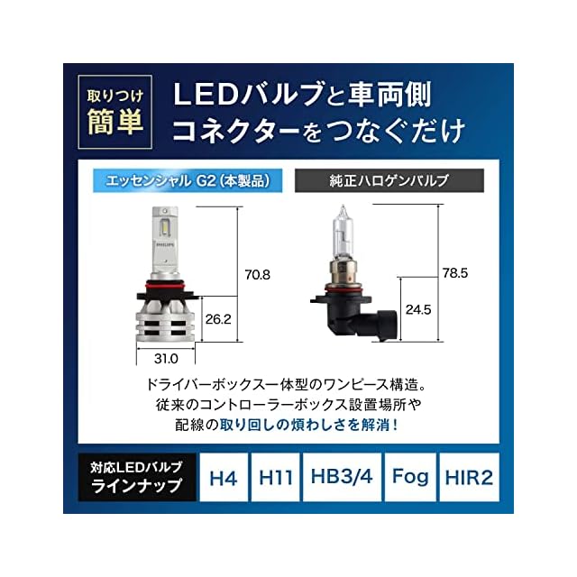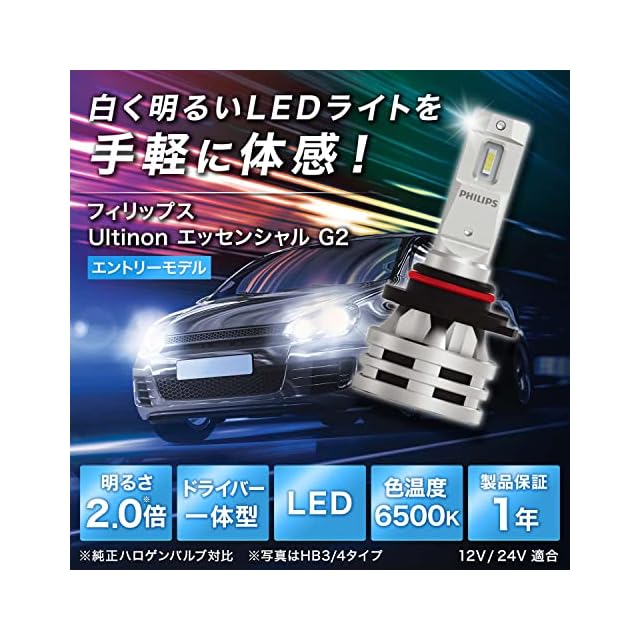 Philips(フィリップス) HB3 HB4 LEDヘッドライト 【新車検・ロービーム車検対応】 6500K 自動車用バルブ PHILIPS UltinonEssential G2 11005UE2X2 2個入