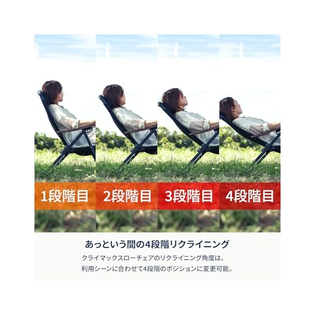 ✅【快適4段階リクライニング】 リクライニング角度は、利用シーンに合わせて4段階のポジションに変更可能。背もたれから身体を起こした状態で、アームを上に持ち上げ、前後にスライドし、窪みにはめるだけの簡単操作です。