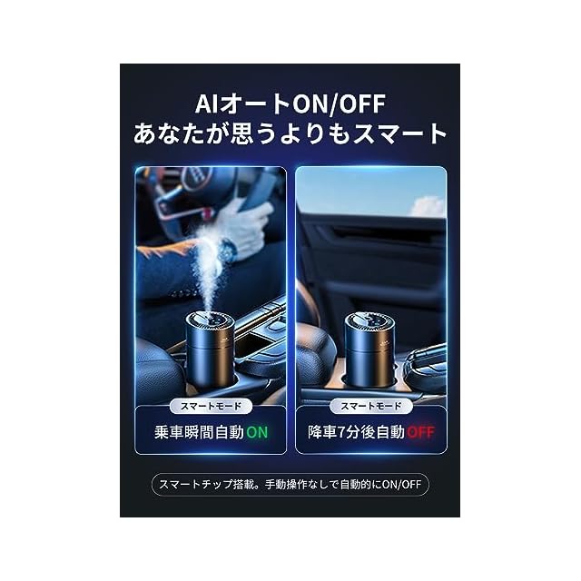 ✅【F26を選ぶ理由③:オートON/OFF】スマートモードは車の運転状態を瞬時に把握し、手動操作なしで自動的にON/OFFを切り替えます。また、香りの調整も3つのモードがあり、お好みに合わせて自由に香りの強さを調整できます。