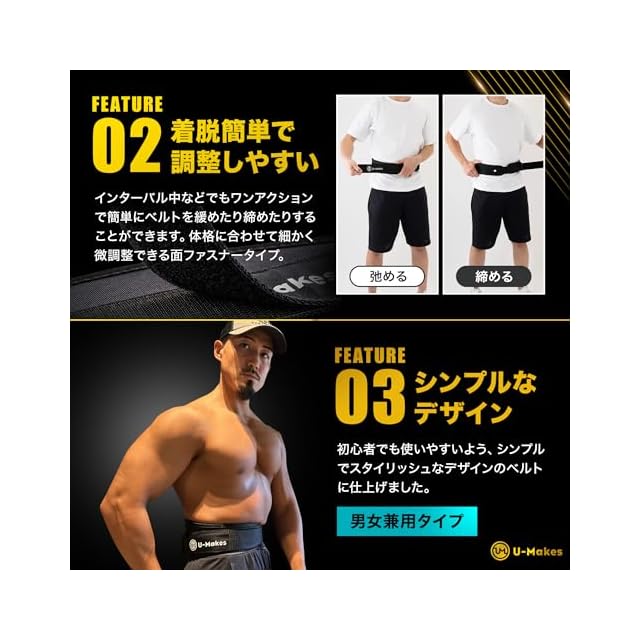 ✅【着脱簡単で調整しやすい】インターバル中などでもワンアクションで簡単にベルトを緩めたり締めたりすることができます。体格に合わせて細かく微調整できる面ファスナータイプ。ナイロン製の本ベルトは、丸洗いもできていつでも清潔です。