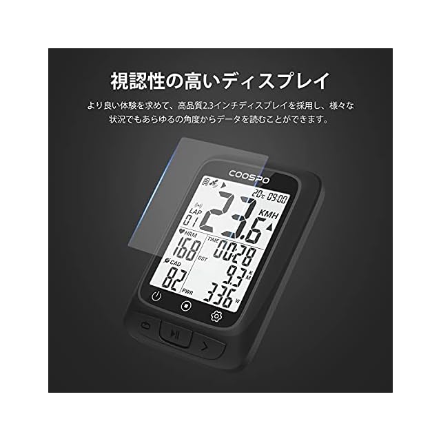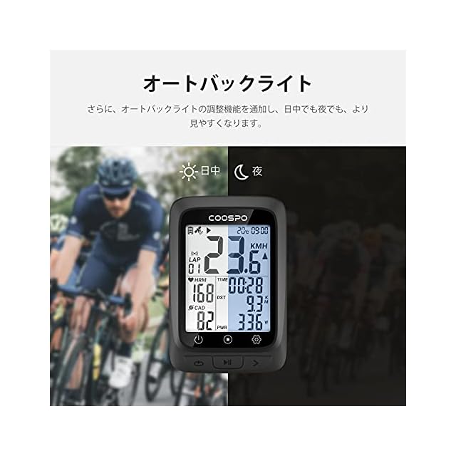 大画面:CooSpo BC107自転車スピードメーターは高品質2.3インチディスプレイを採用し、さらにオートバックライトの調整機能を通加し、日中でも夜でも、より見やすくなります。