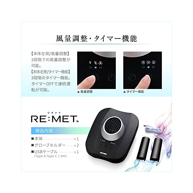 デイトナ(Daytona) バイク ヘルメット消臭機 乾燥機 プラズマイオン 3段階風量 タイマー付き グローブも対応 RE:MET(リメット) ブラック 19264