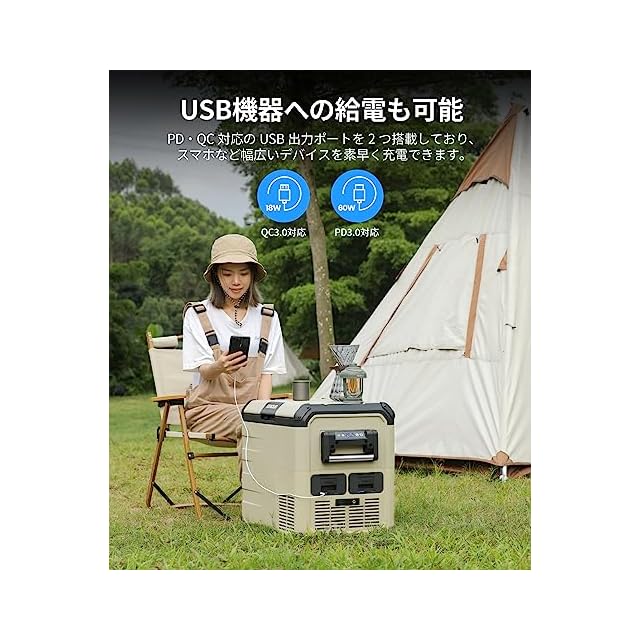 【シーンに合わせて充電方式を選べる】PD対応充電器で充電するのは、短時間で満充電が可能です。冷蔵庫本体で充電するのは、冷蔵庫を保冷しながらバッテリーに充電できます。ソーラーパネルで充電するのは、キャンプや停電時に役立ちます。