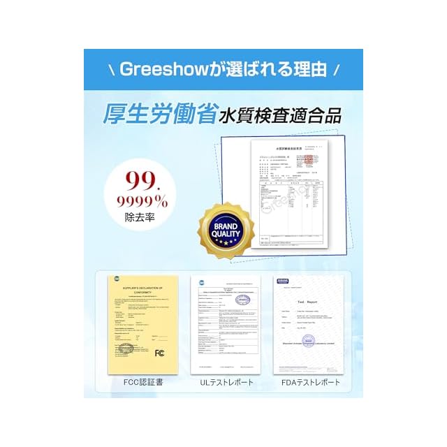 【高性能中空糸膜フィルター】細菌を99.9999%、ウィルスも99.999%の割合で、ほぼ全ての水に含まれるウィルス、細菌、寄生虫、大腸菌、ブドウ球菌などの直径0.01um以上の固形異物を効果的にろ過します。より安心でより安全に使用することができます。使用期限:使用開始後、約6ヶ月。(あるいは浄水器の総使用容量が上限に達している場合)。