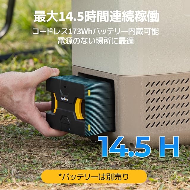 【安心の2年&充実の付属品】 BougeRVの車載冷蔵庫は、ご購入日から24ヶ月間の製品付き。万が一の問題や初期不良が発生しても、迅速に対応いたします。期間内であれば、安心してご使用いただけます。また、付属品も充実しており、車載冷蔵庫以外に、173Whバッテリー、100~240V ACアダプター、12/24V DC電源コード、日本語説明書が同梱されています。購入後すぐに使えるため、初めての方にも安心です。