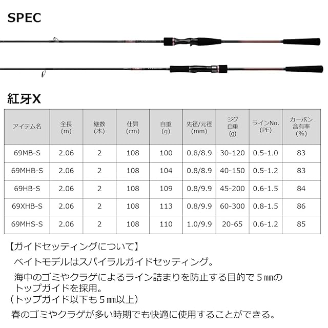 ジグ重量(g):20-65 ■ラインNo.(PE):0.6-1.2 ■カーボン含有率(%