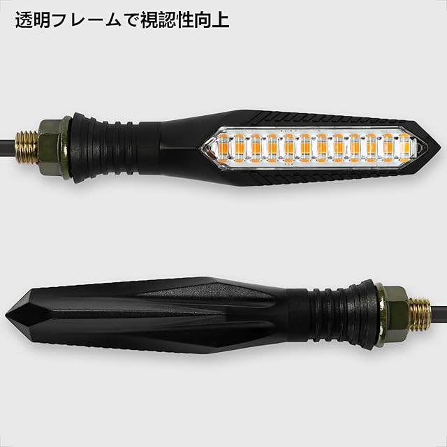 流れるLEDエフェクト: 流れるようなLEDエフェクトが、従来の点滅に比べて目立ちやすく、周囲のドライバーに対してより効果的に方向を示します。