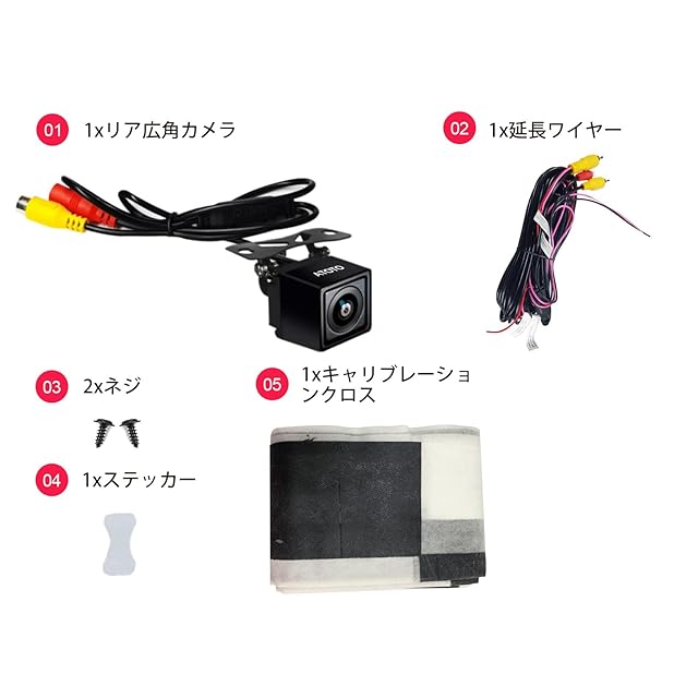 このカメラは180度の超広角視野を特徴とし、仮想サラウンドビュー(VSV)パーキング機能を装備した特定のATOTO S8 Androidヘッドユニット用に設計されています。パッケージには追加のキャリブレーションクロスが含まれており、小売価格にはカメラとキャリブレーションクロスの両方が含まれています。