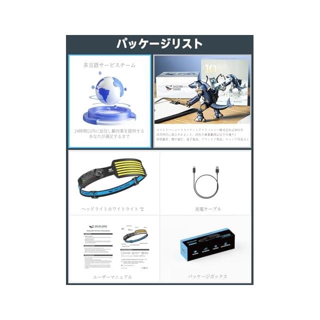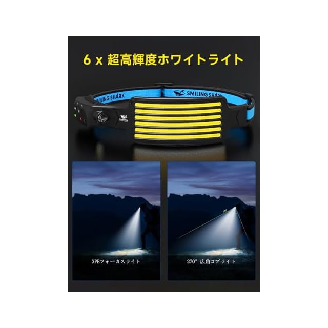 TD-0123 Smiling Shark 充電式 LED ヘッドライト, 【2023年最新款・PSE认证・白光2個セット】 USB充電可能 6 倍高輝度アウトドアヘッドランプ 230°広角照明 集光 超軽量 IPX4 防水防塵 8時間連続使用可能 キャンプ 登山 散歩 釣り 作業 停電用 防災用 最適