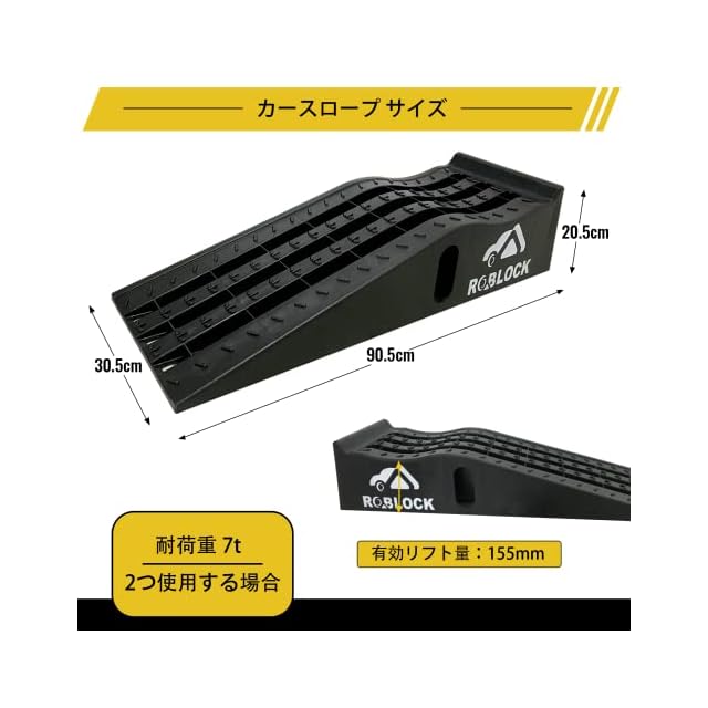 ROBLOCK カースロープ リフト タイヤスロープ耐荷重7T 油圧ジャッキの交換 オイル交換や車両整備のため 軽量 2個組 90.5cmx30.5cmx20.5cm